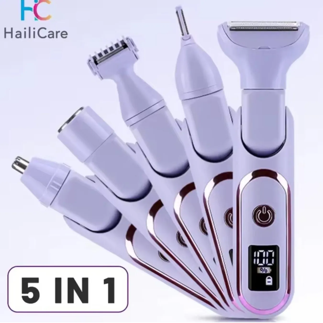 La HailiCare 5 en 1 es una herramienta de belleza avanzada diseñada para ofrecerte un depilado suave, rápido y completamente indoloro. Su diseño moderno incluye pantalla digital, bloqueo de seguridad y 5 cabezales especializados que cubren todas tus necesidades de cuidado personal.
