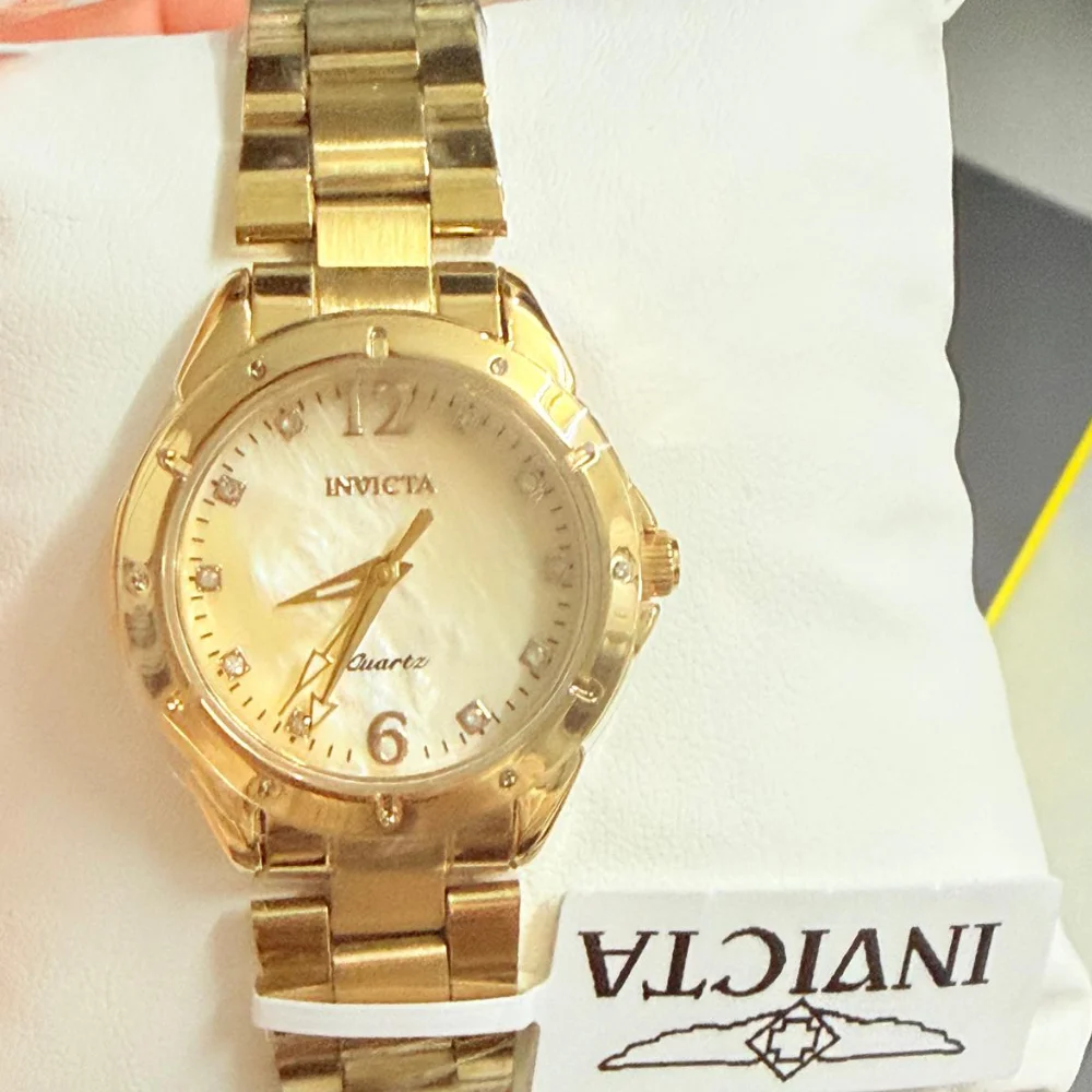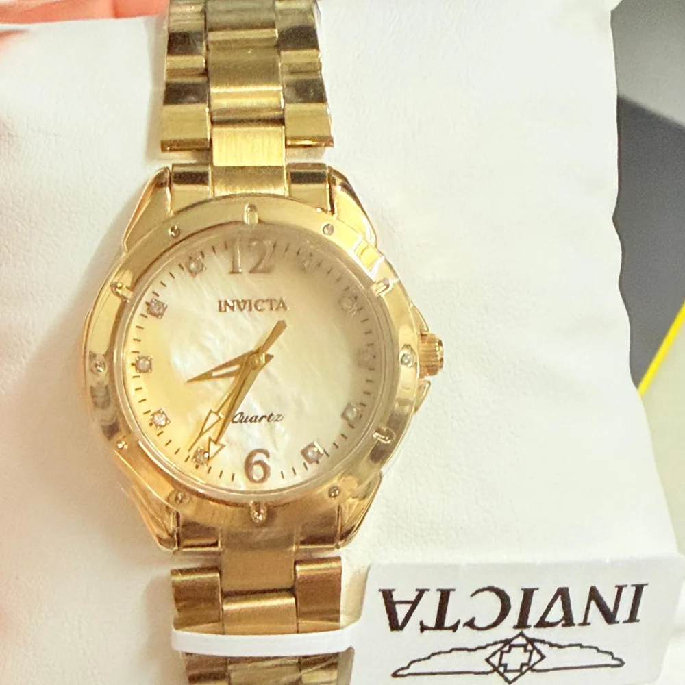Reloj Invicta Angel de cuarzo para mujer, modelo 27446, en tono dorado con esfera de nácar